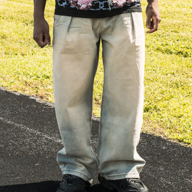 Light Beige Pleated Wide Leg Jeans